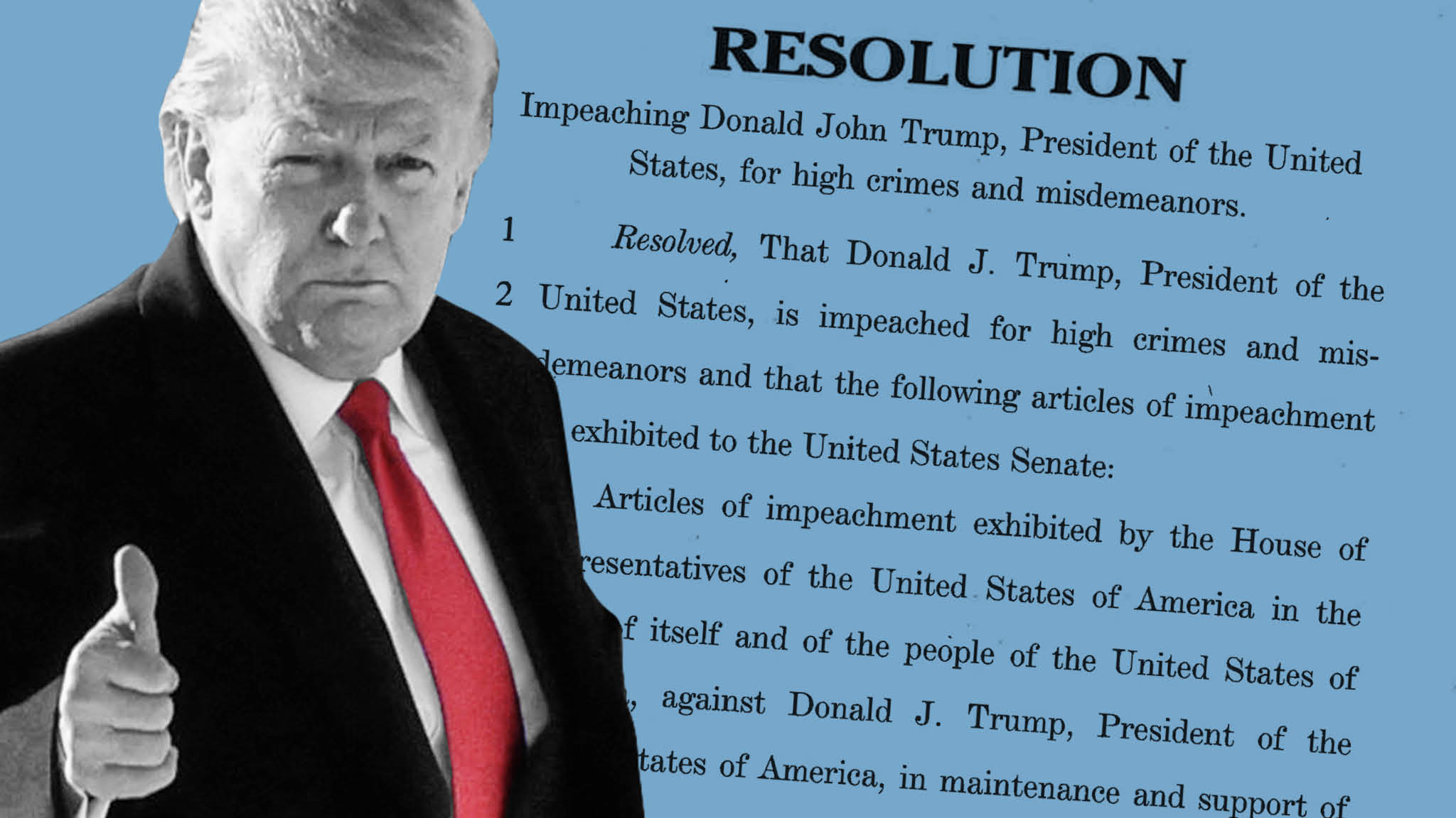 Incitement of insurrectionHe is the only US. Resolved That Donald John Trump President of the United States is impeached for high crimes and misdemeanors and that the following article of impeachment be exhibited to the United States Senate. President Donald Trump impeached After weeks of discussions among legislators the House of Representatives voted to impeach the 45th President Donald Trump for abuse of power and obstruction of.