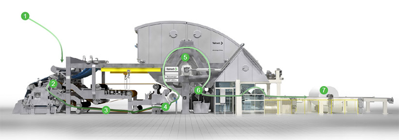It also acts as a layer of protection for the hands during these processes. The Paper production process Pulp bales are pulpered Stock is cleaned and refined SW HW andor deflaked HW and then approach system and fan pump the fan pump fed to the Tissue Machine. A local production plant consists of machines such as The Jumbo rewinding machine band saw cutter etc.