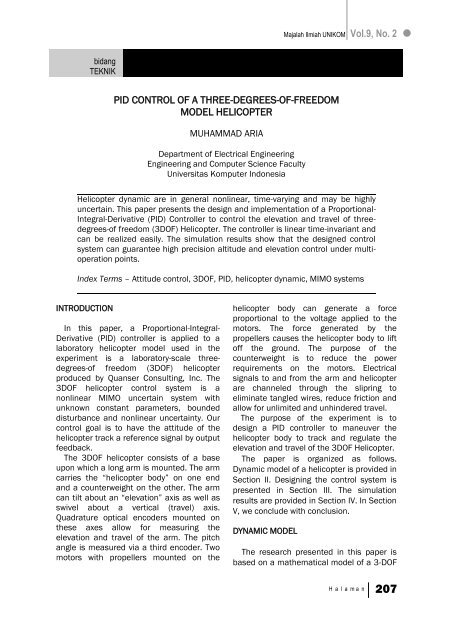 Pid Control Of A Three Degrees Of Freedom Model Helicopter