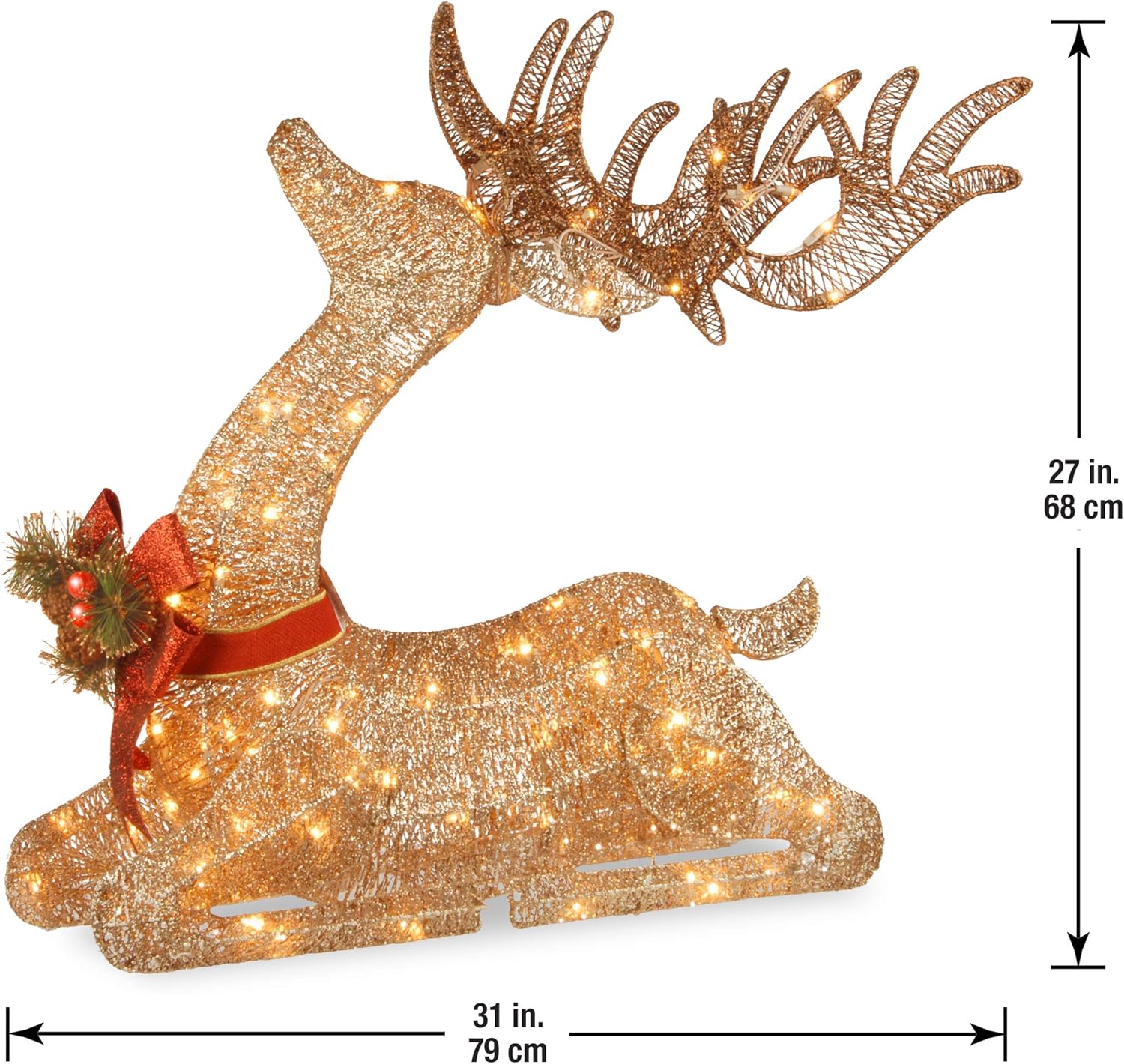 Amazon Com National Tree Company Pre Lit Artificial Christmas Decor Includes Pre Strung White Led Lights And Ground Stakes Sisal Splendor Champagne Lying Deer 4 Ft Home Kitchen
