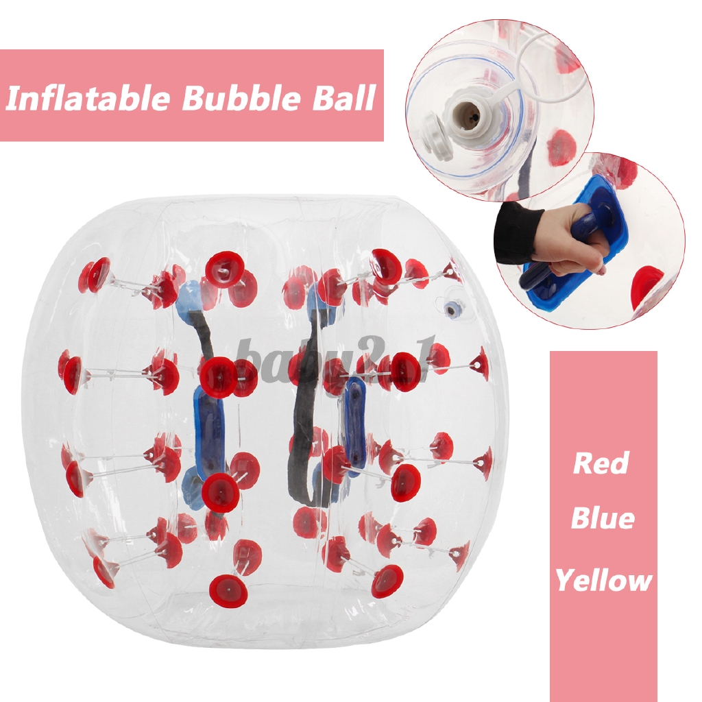Watch the kids battle for fun with inflatable body bumper balls. Larger models are for players between 40 and a little over 60 in height. Bumper ball is a safe and protective ball with adjustable shoulder straps and handles inside.