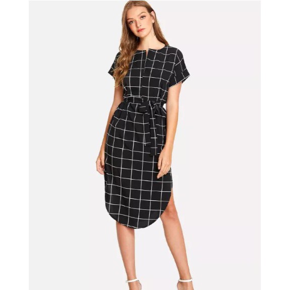 From Shein Com Grid Print Asymmetrical Dress Shopee Indonesia
